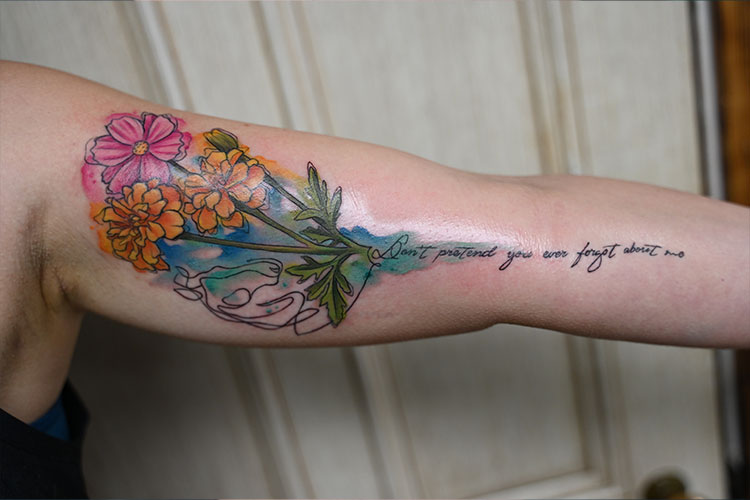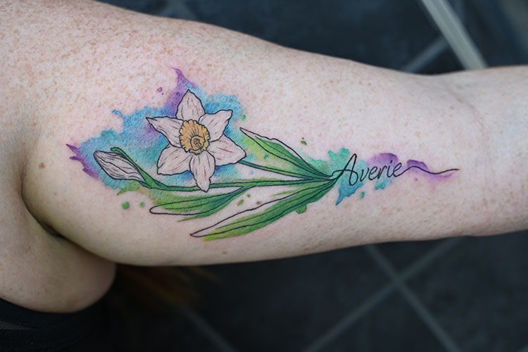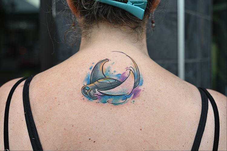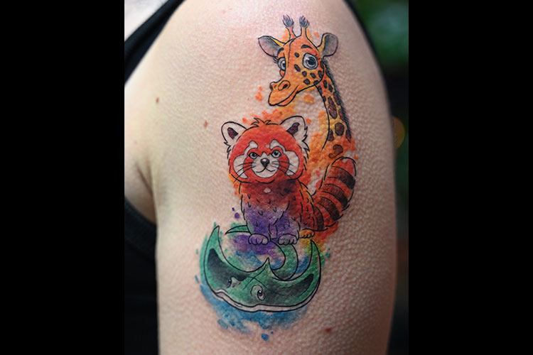 She specializes in custom watercolor tattoos inspired by wildlife, nature, and emotional storytelling. Each design begins as a hand-painted watercolor piece, allowing clients to leave with both a one-of-a-kind tattoo and the original artwork.