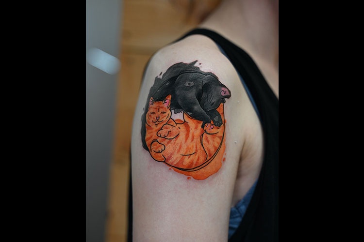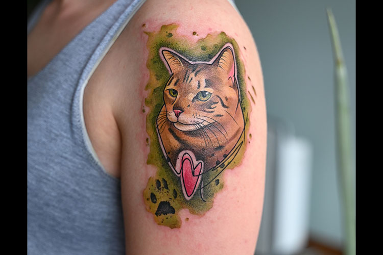 Known for her animal portraits, nature-inspired sleeves, literary themes, and expressive watercolor style, Charity creates tattoos that are both visually striking and deeply personal.