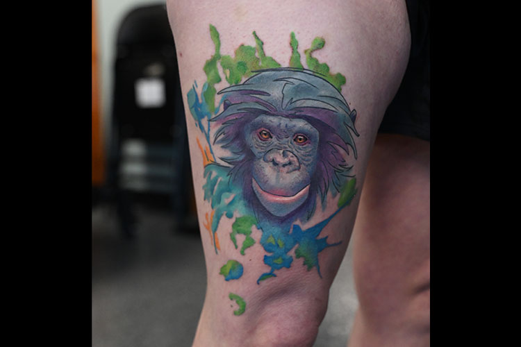 Charity Oetgen is a tattoo artist and watercolor painter with over 15 years of experience. She holds an MFA from Laguna College of Art + Design, has been published by National Geographic, and her work has been included in Jane Goodall’s personal collection.